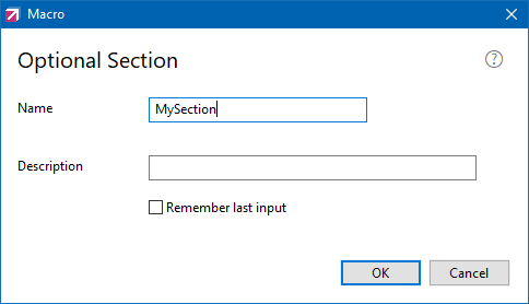 This macro prompts the user to insert the optional section. Input dialog window appears before the command is executed.