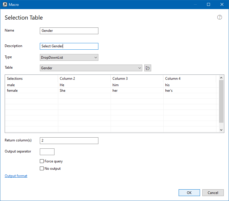 •Output format (Optional) - The macro output can be further processed by several additional macro functions. See: Output format